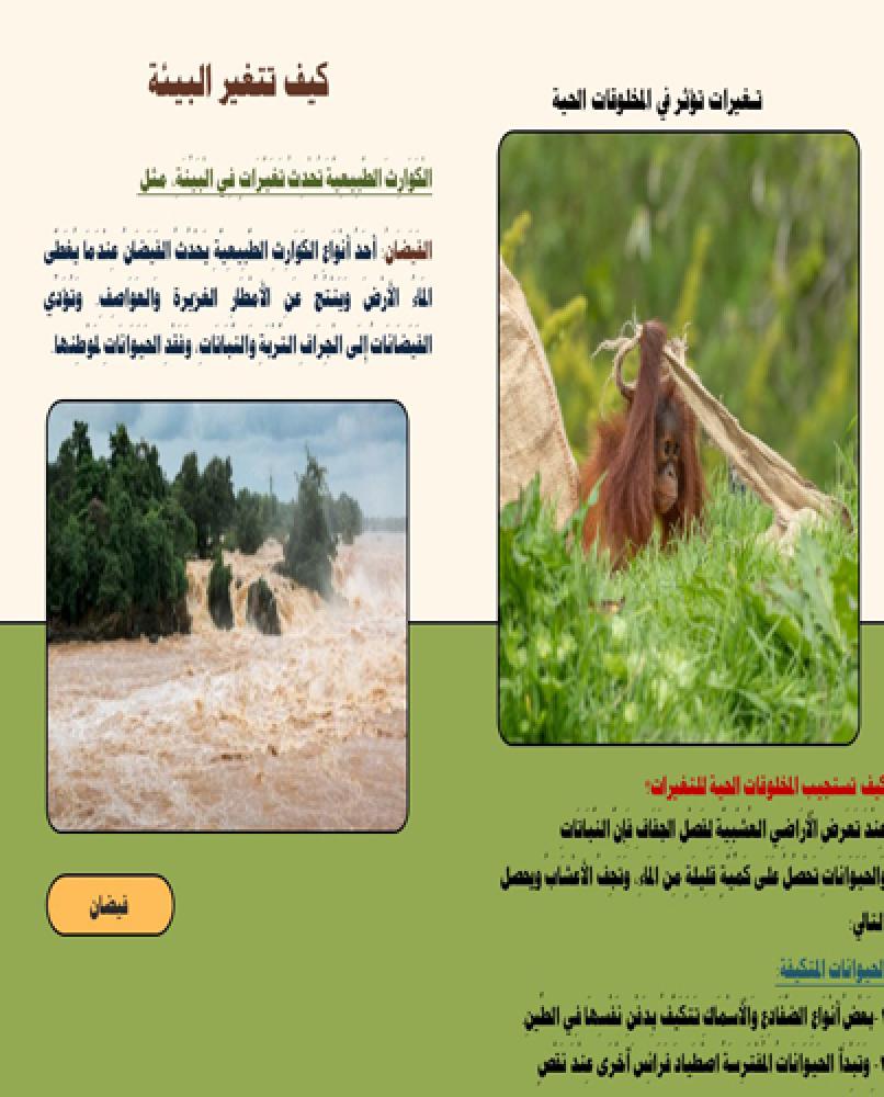 مطوية لدرس تـغيرات تؤثر في المخلوقات الحية